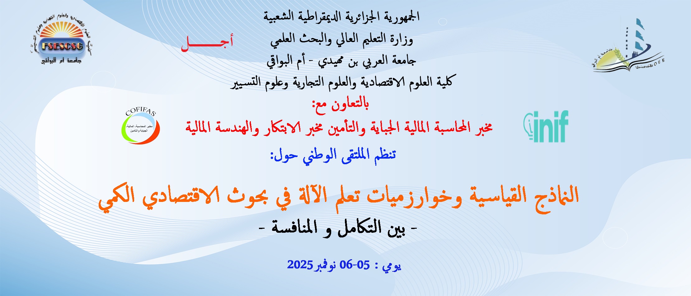 تحميل المطوية تصفّح المقالات الملتقى الدولي العربي للذكاء الإصطناعي الملتقى الوطني ذو الترقيم الدولي حول: واقع توجه الشباب نحو المقاولاتية في الجزائر