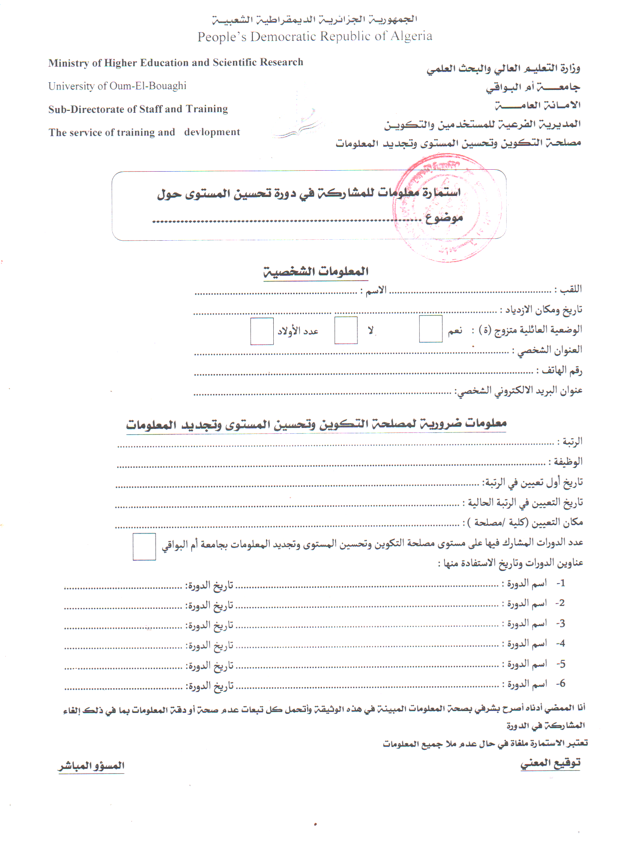 إعلان عن فتح دورة تكوين تكميلي قبل الترقية و تكوين تحضيري أثناء فترة التربص