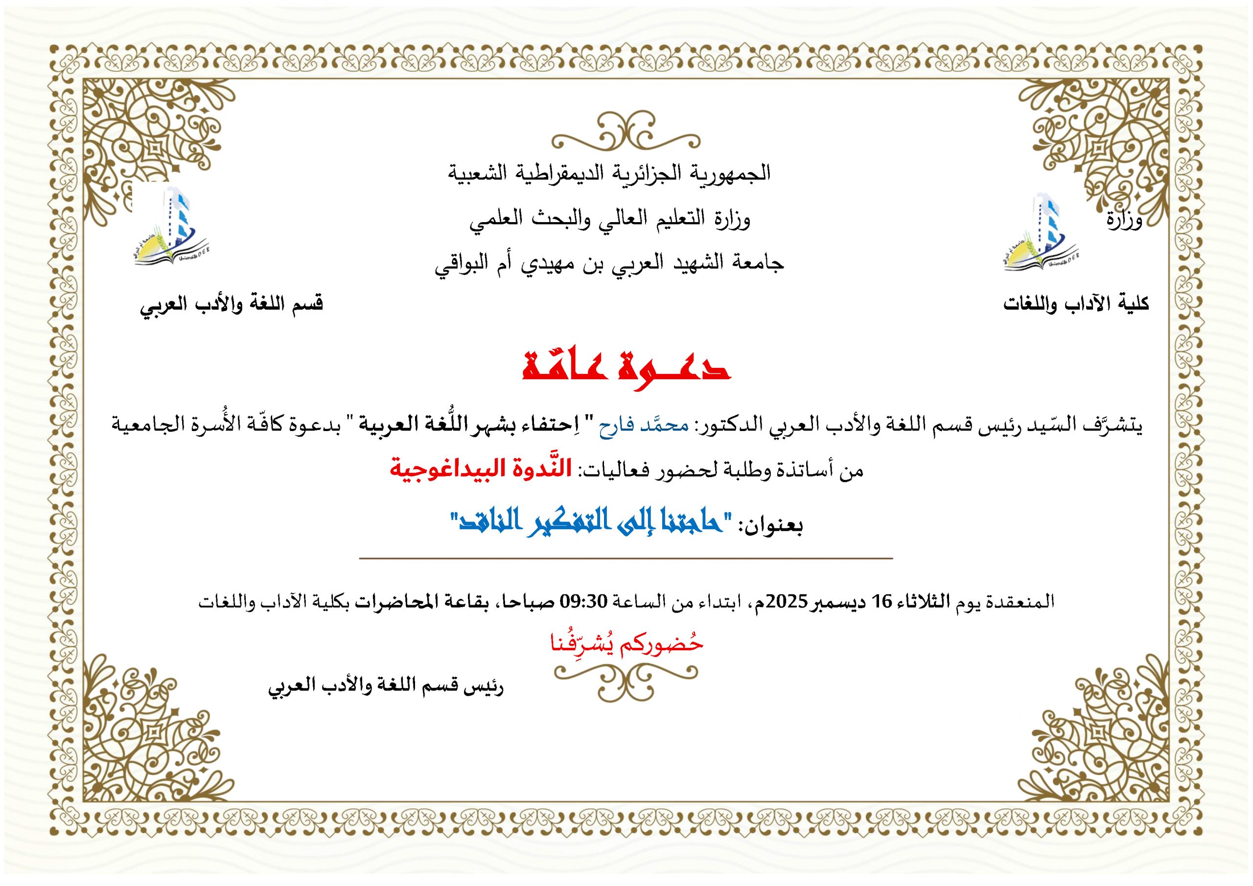 الندوة الإحتفالية باليوم العالمي للغة لعربية، يوم 14 ديسمبر 2025