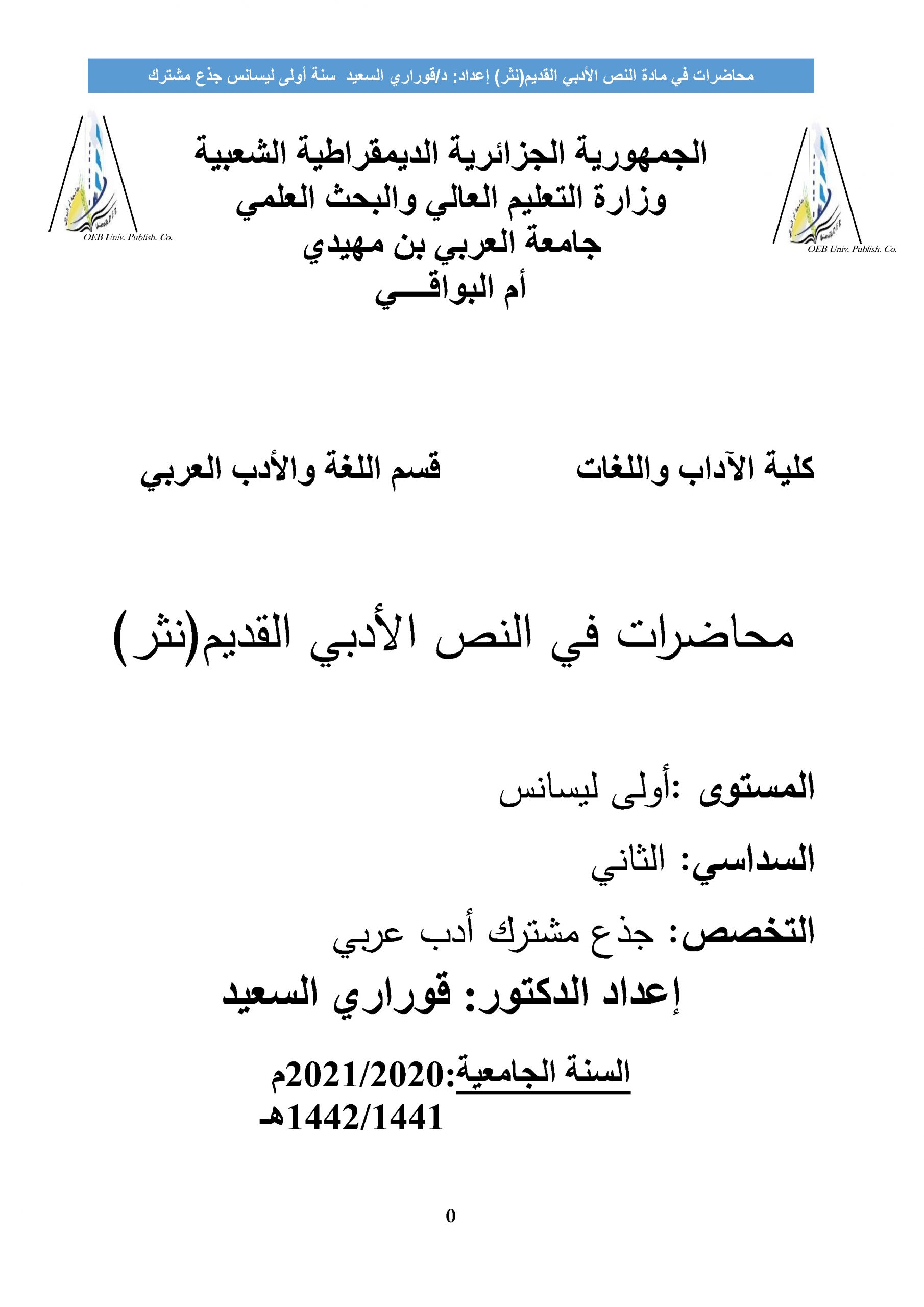 مطبوعة بعنوان محاضرات في النص الأدبي القديم (نثر)
