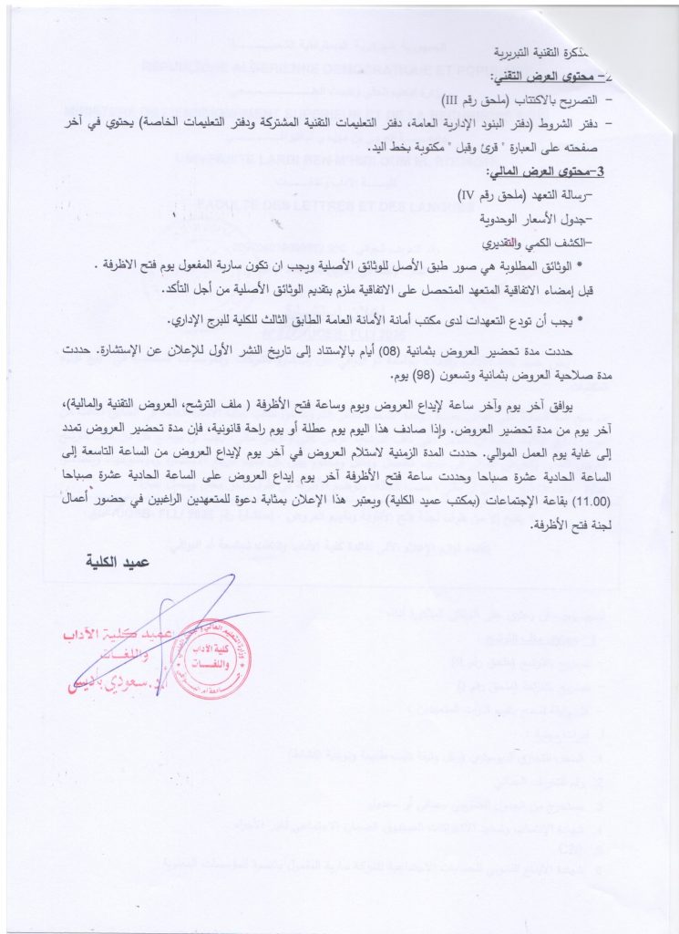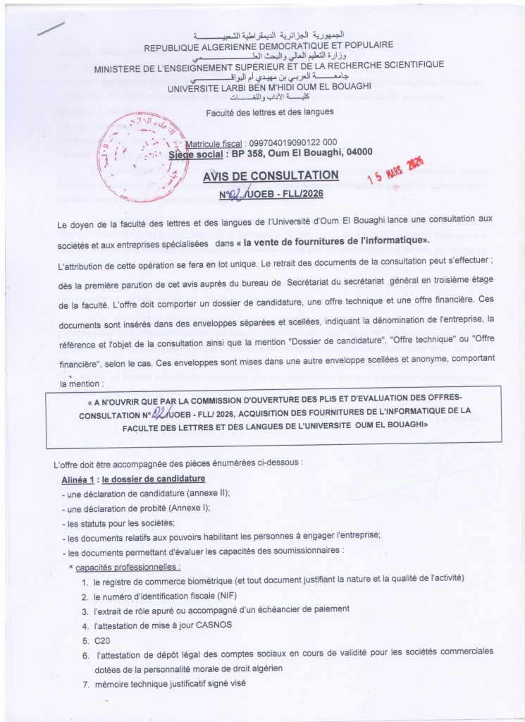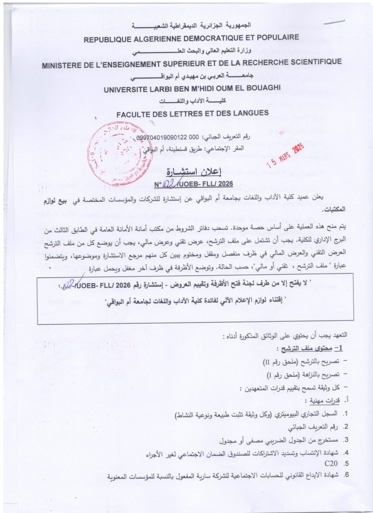 إعلان إستشارة رقم 01 /ج أ ب/ ك آ ل/ 2026