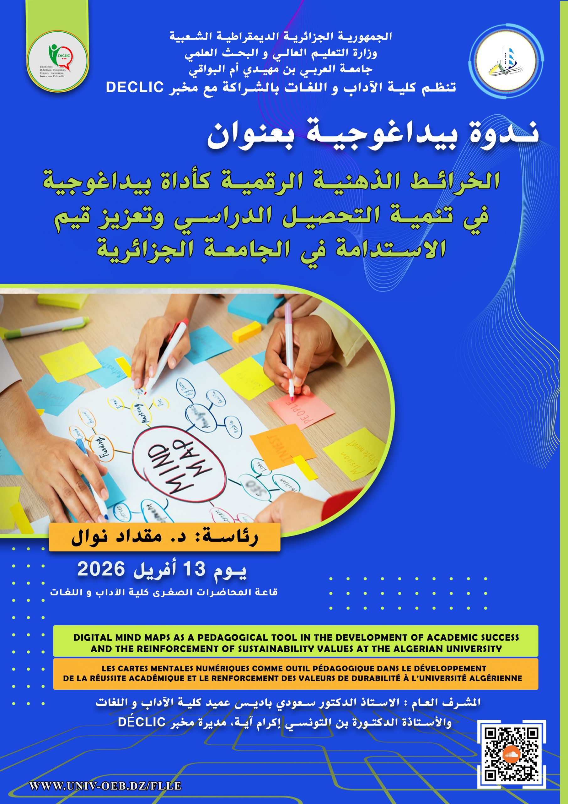 ندوة تكوينية موجهة إلى طلبة الدكتوراه موسومة بـ التعليمية: تخصص علمي جديد، يوم 10 فيفري 2026، للدكتورة دلولة خلدون