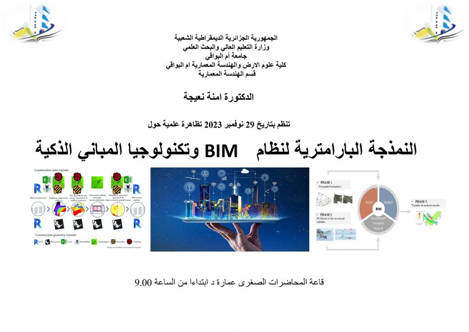 Home/University Programs on Sustainable Land Management for Agriculture and Tourism University Programs on Sustainable Land Management for Agriculture and Tourism Scientific day entitled: “Parametric BIM modelling, and Smart Building technology” Link: https://www.univ-oeb.dz/vrlex/ar/2023/9018/ International Forum on “The City and Its Relationship with Tourism: An Opportunity for Local Development” Link: http://www.univ-oeb.dz/vrlex/ar/2022/5180/?fbclid=IwAR2F2QiK8QLqMBVGd-20os0gtnmWqrZTInQ7K1xCy3-eSMbYLJUj2G8SmIY Facebook Messenger Messenger WhatsApp Telegram Share via Email Print