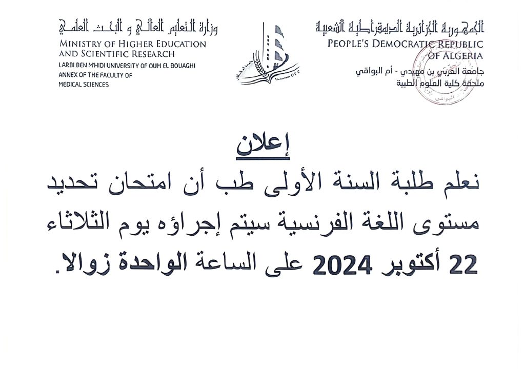إعلان بخصوص امتحان تحديد مستوى اللغة الفرنسية