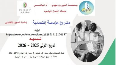 تعلن هيئة حاضنة الأعمال لجامعة أم البواقي عن تمديد التسجيلات للسنة الجامعية 2025-2026 في إطار تنظيم عملية التسجيل الخاصة بالدورة الأولى، وضعت حاضنة…