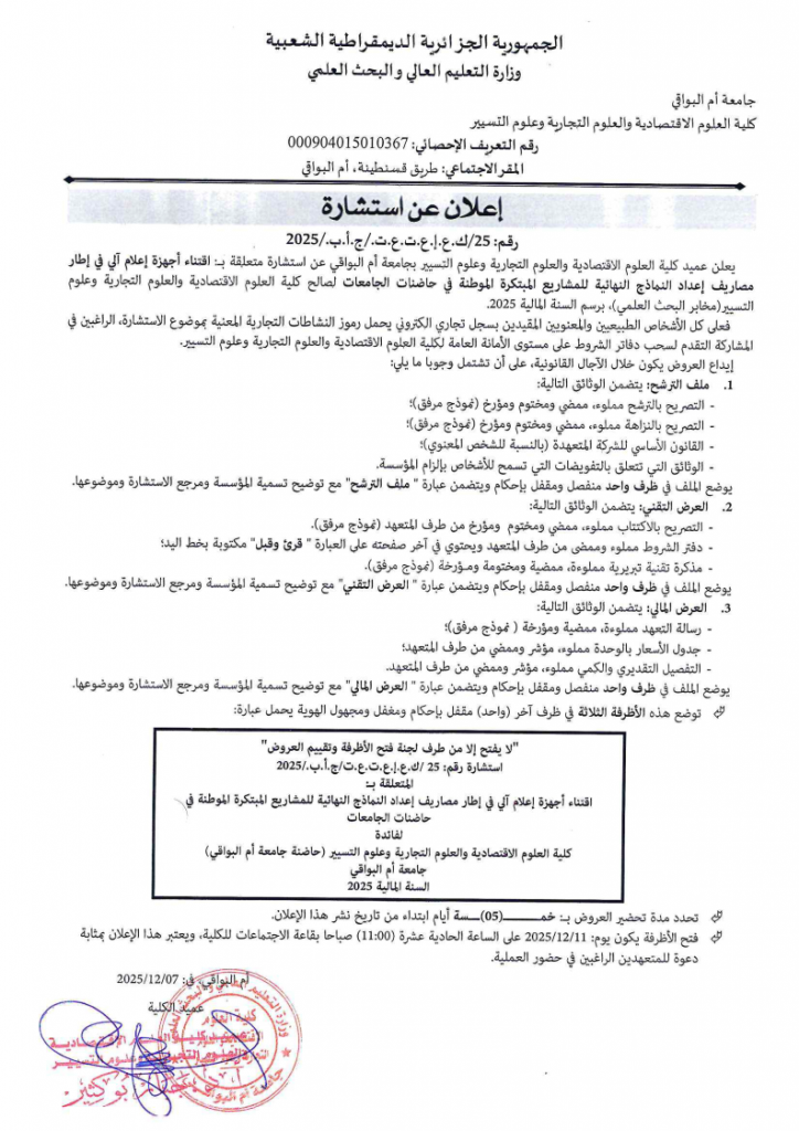 الرئيسية/استشارات/استشارة متعلقة باقتناء أجهزة الاعلام الٱلي في اطار مصاريف إعداد النماذج النهائية للمشاريع المبتكرة الموطنة في حاضنات الجامعات استشارات استشارة متعلقة باقتناء أجهزة الاعلام الٱلي في اطار مصاريف إعداد النماذج النهائية للمشاريع المبتكرة الموطنة في حاضنات الجامعات