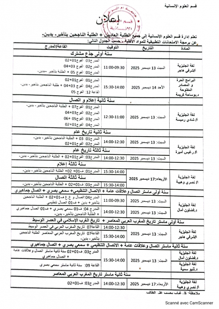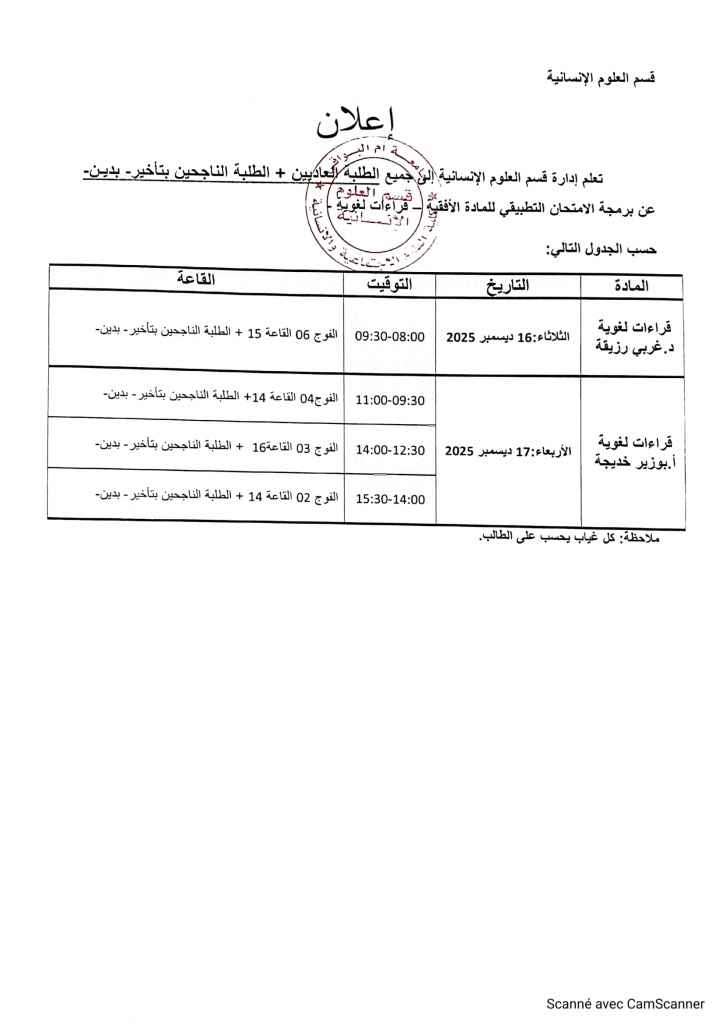 إعلان استشارة رقم : 12 /FSSH /UOEB/ 202529 أكتوبر 2025