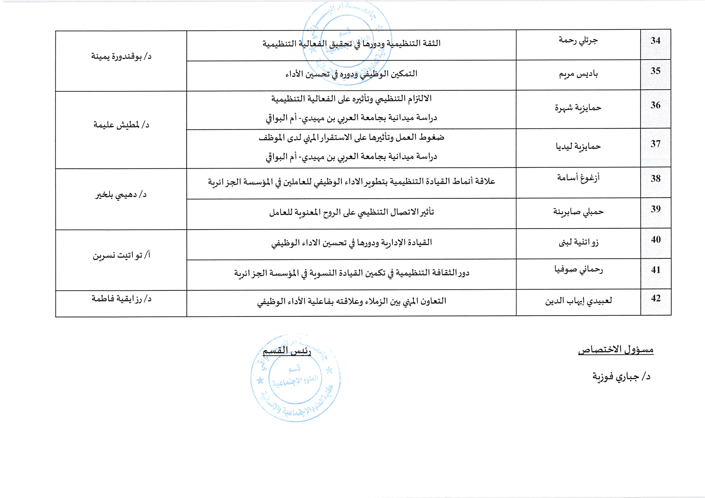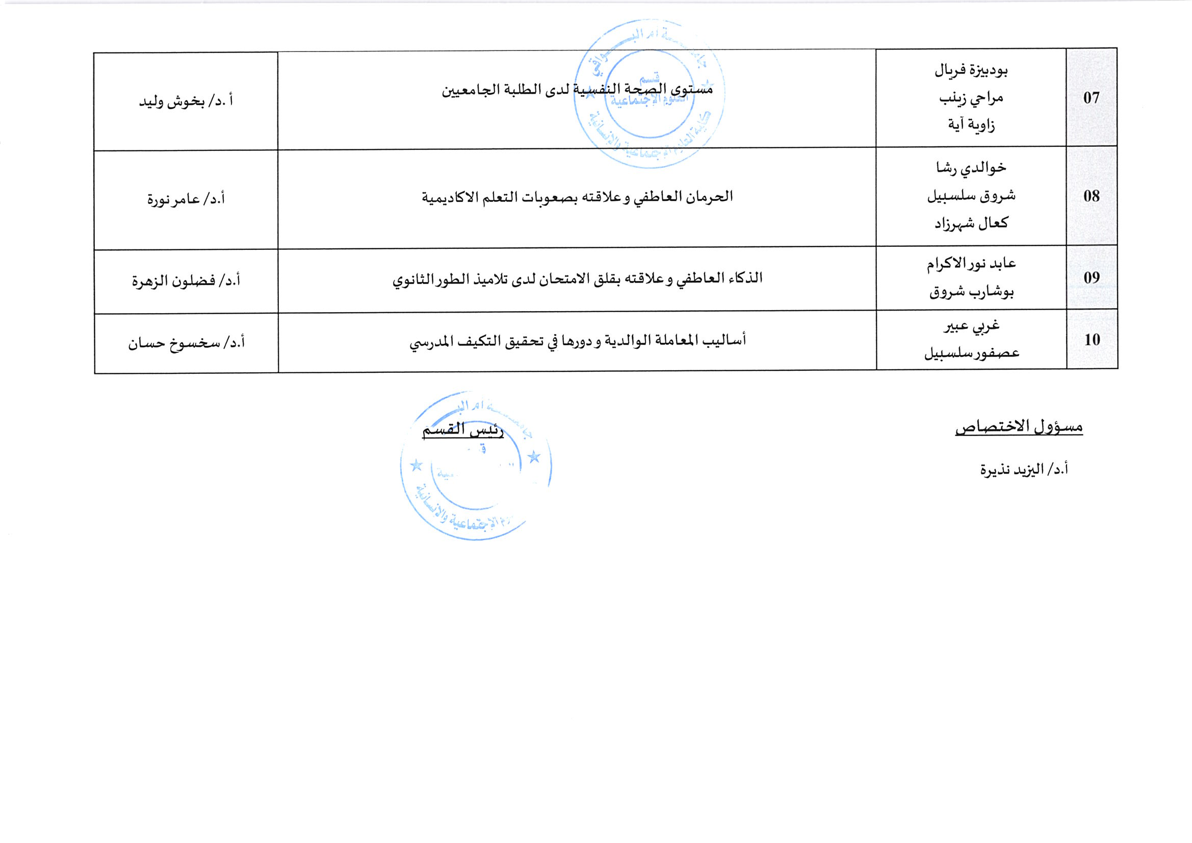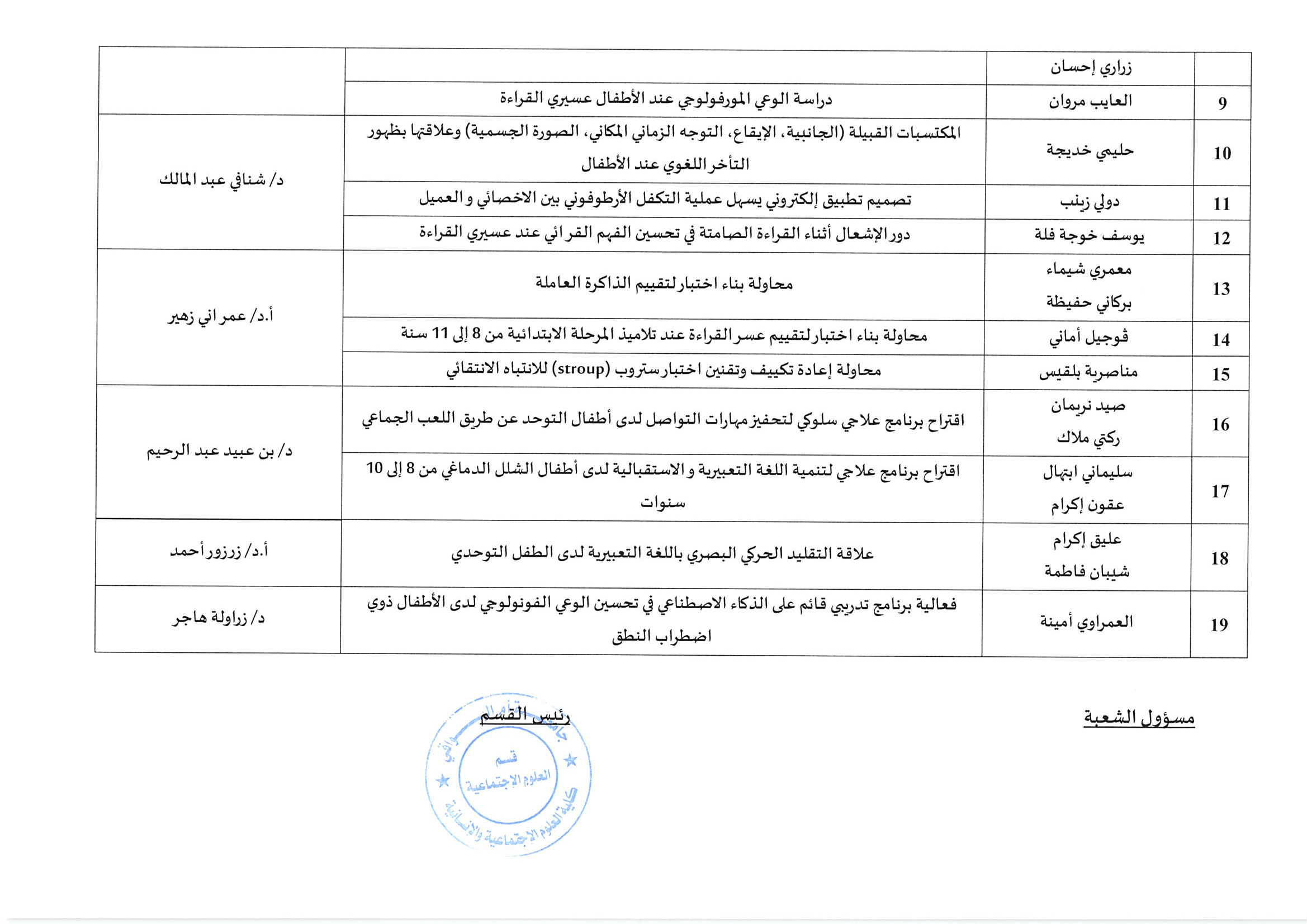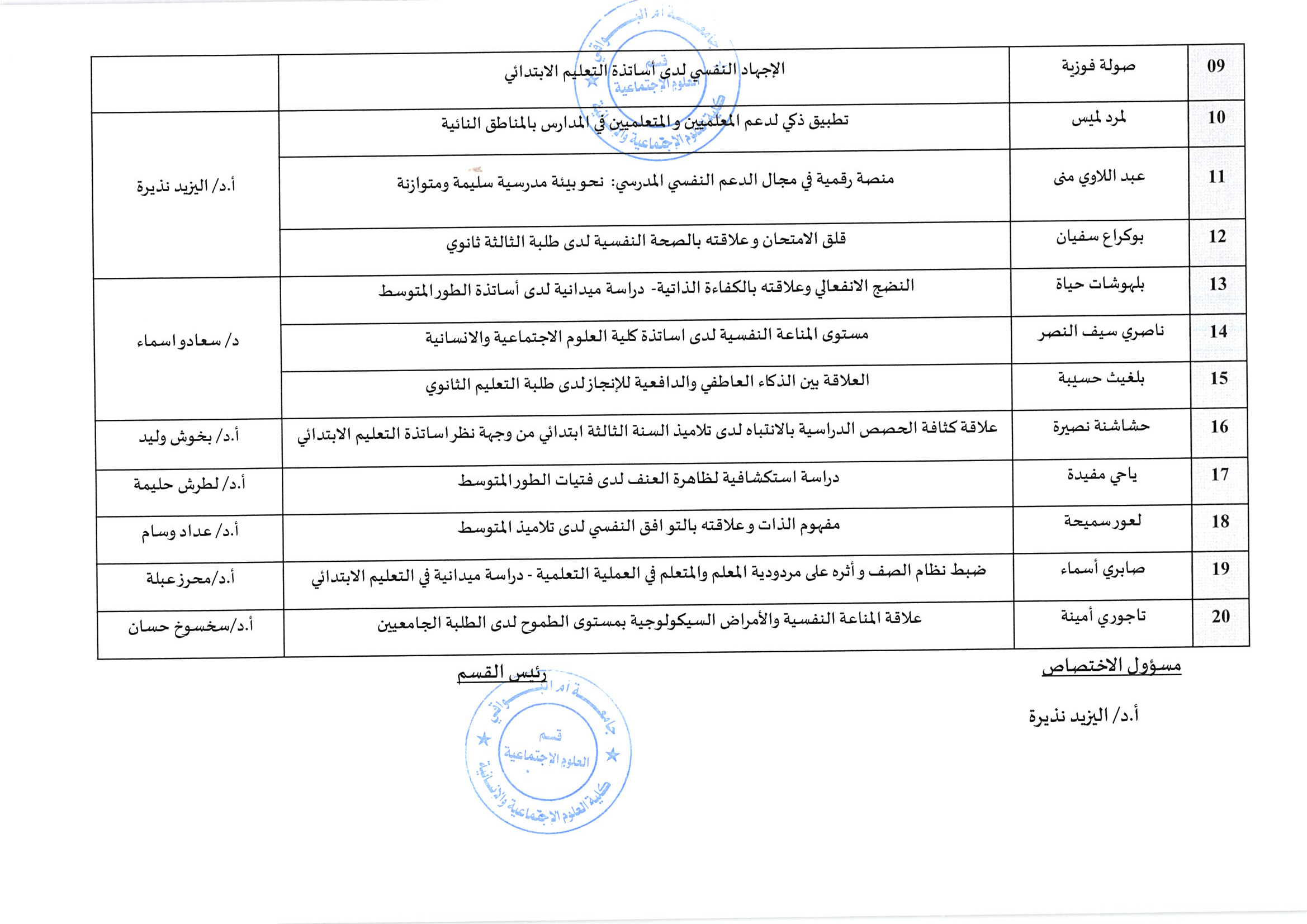 توزيع الإشراف النهائي لقسم العلوم الإجتماعية