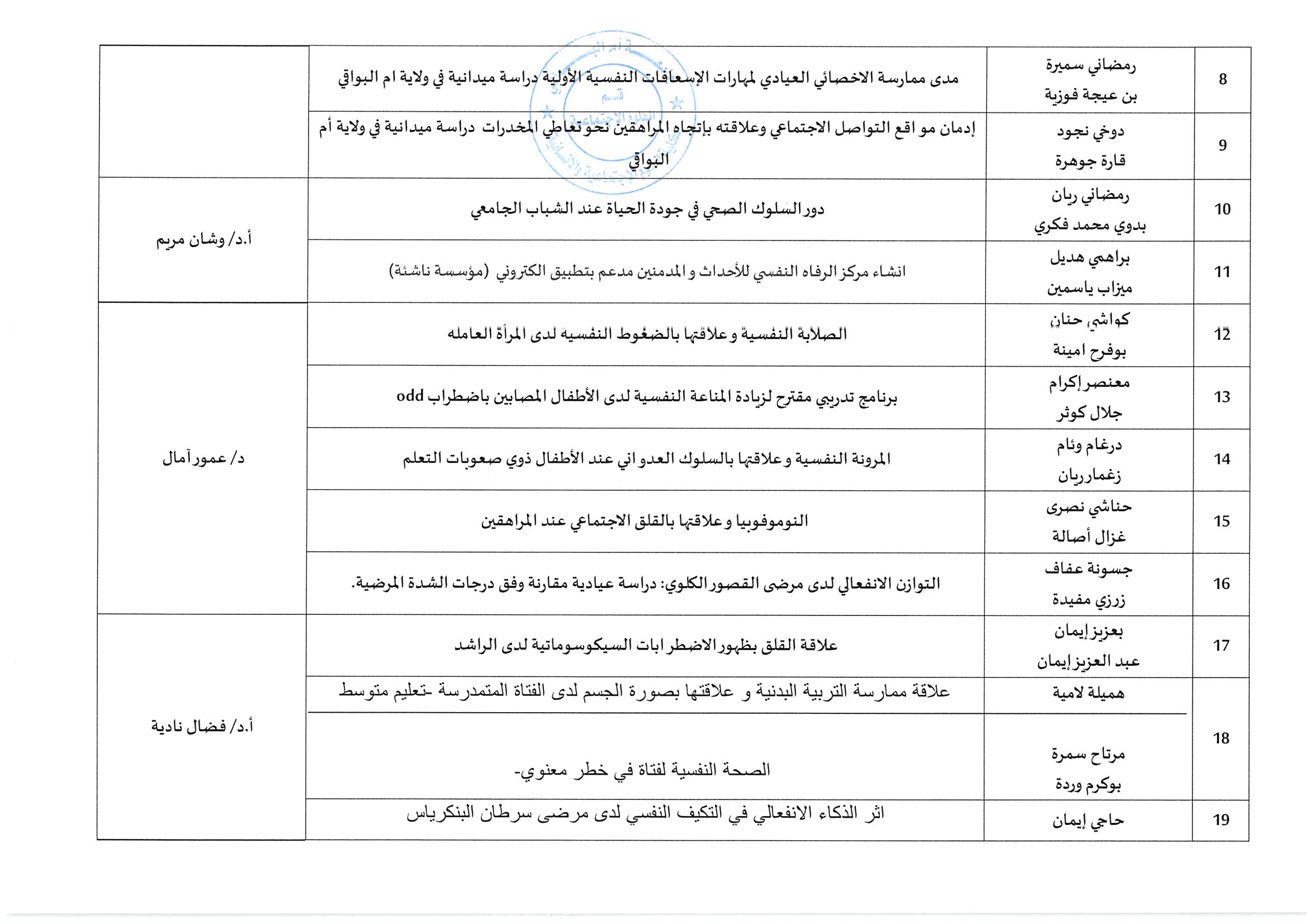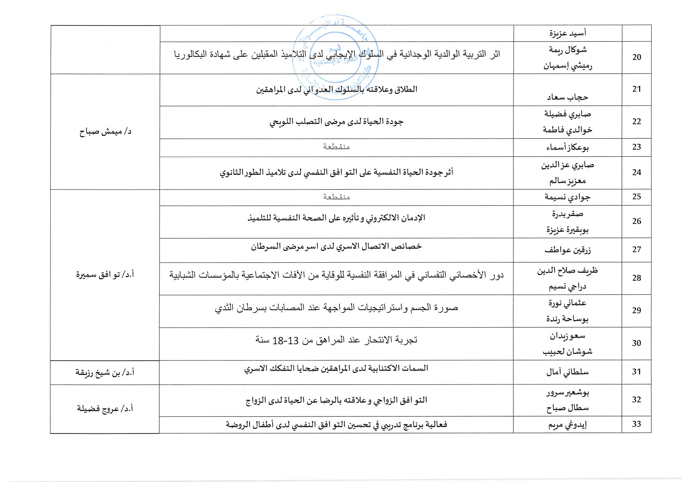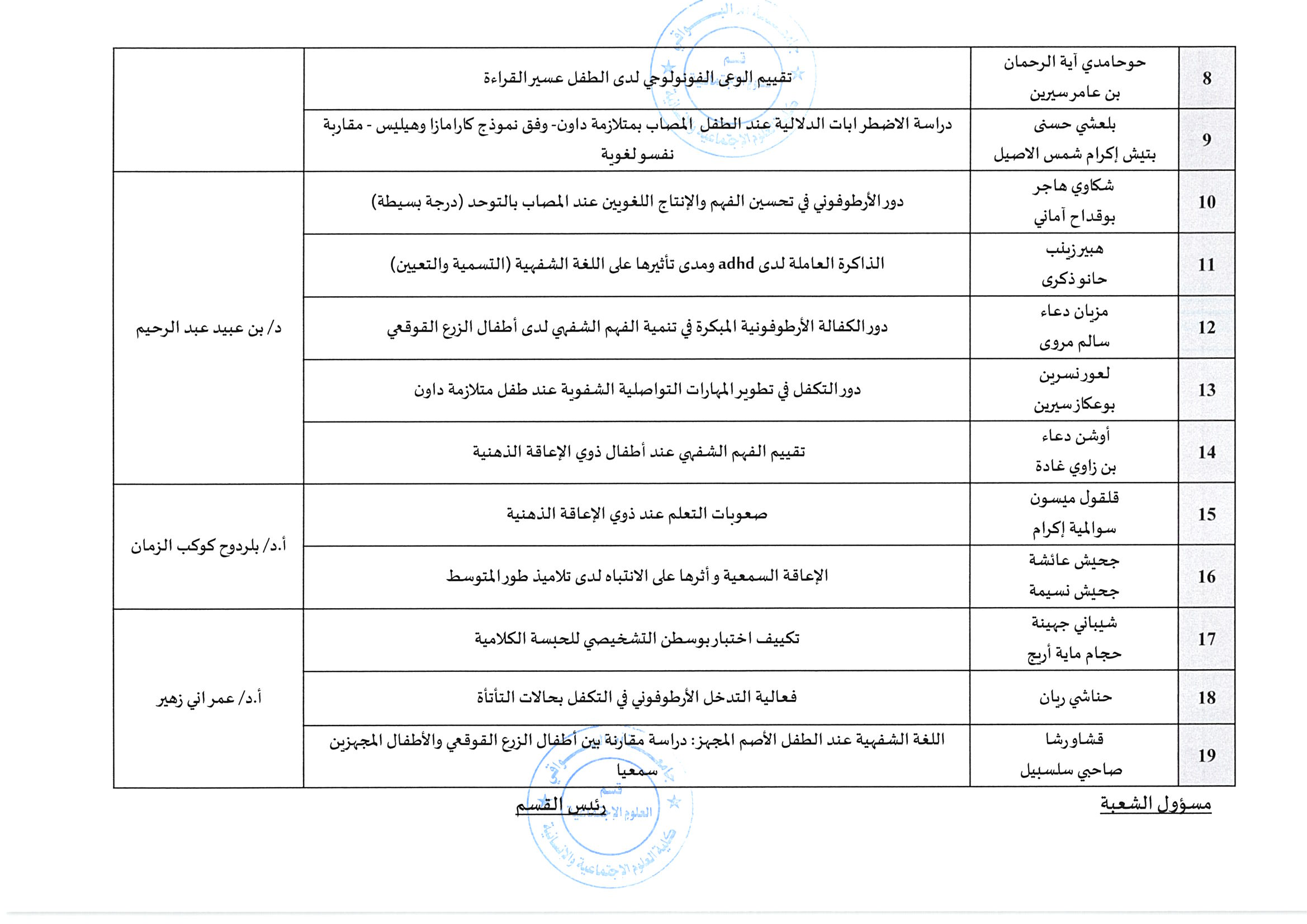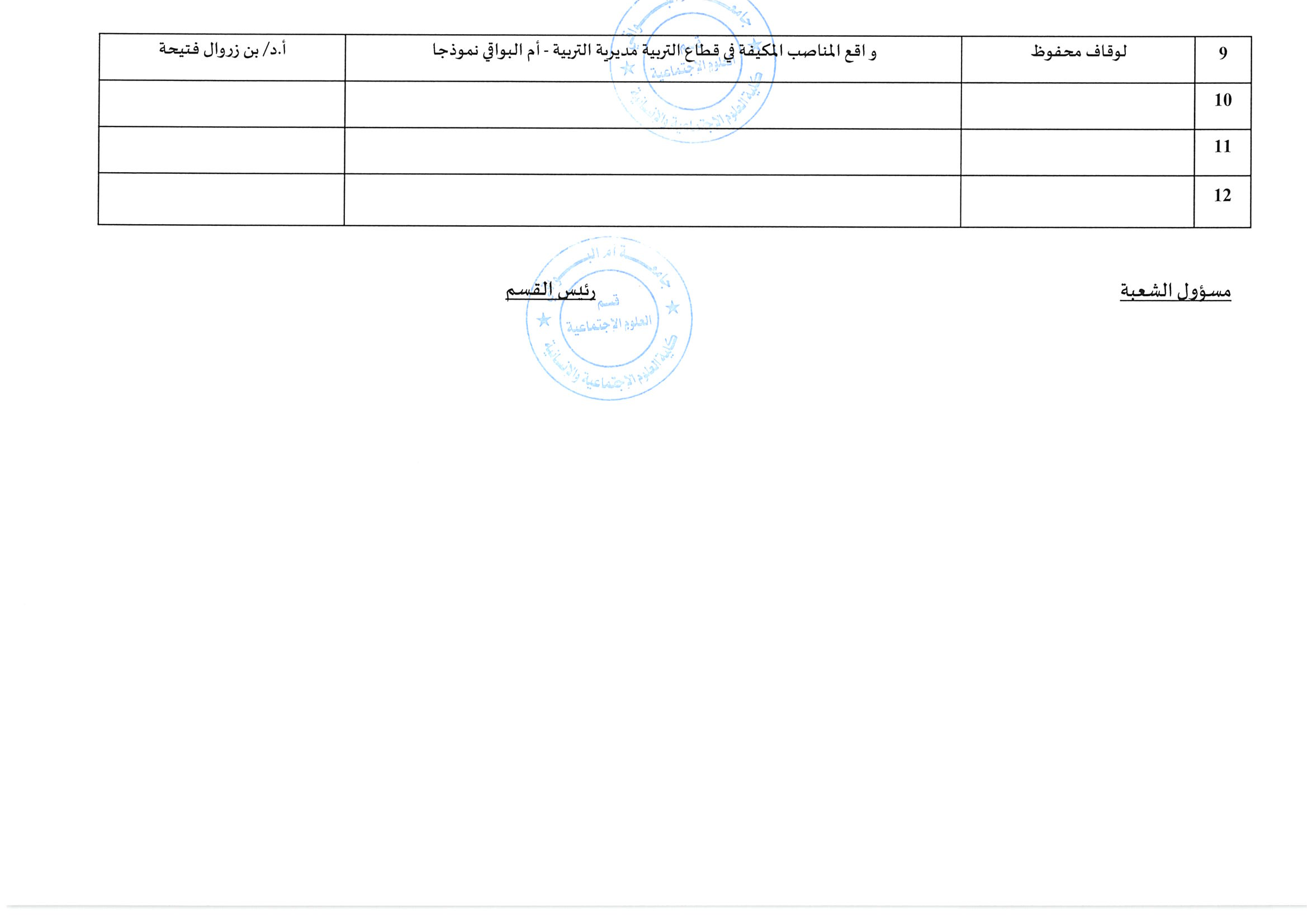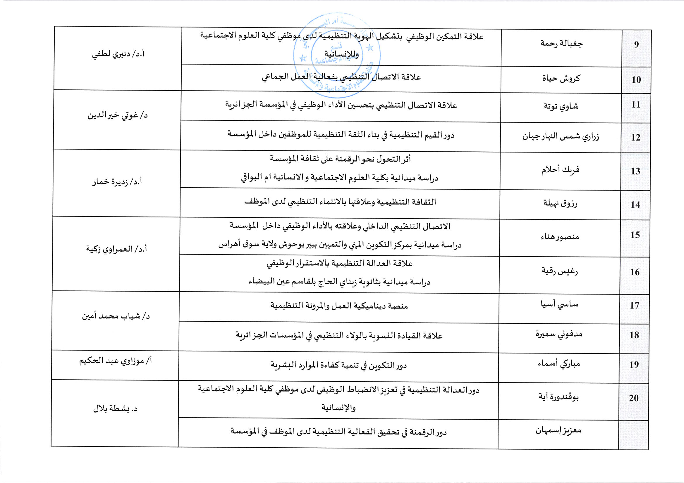 توزيع الإشراف النهائي لقسم العلوم الإجتماعية