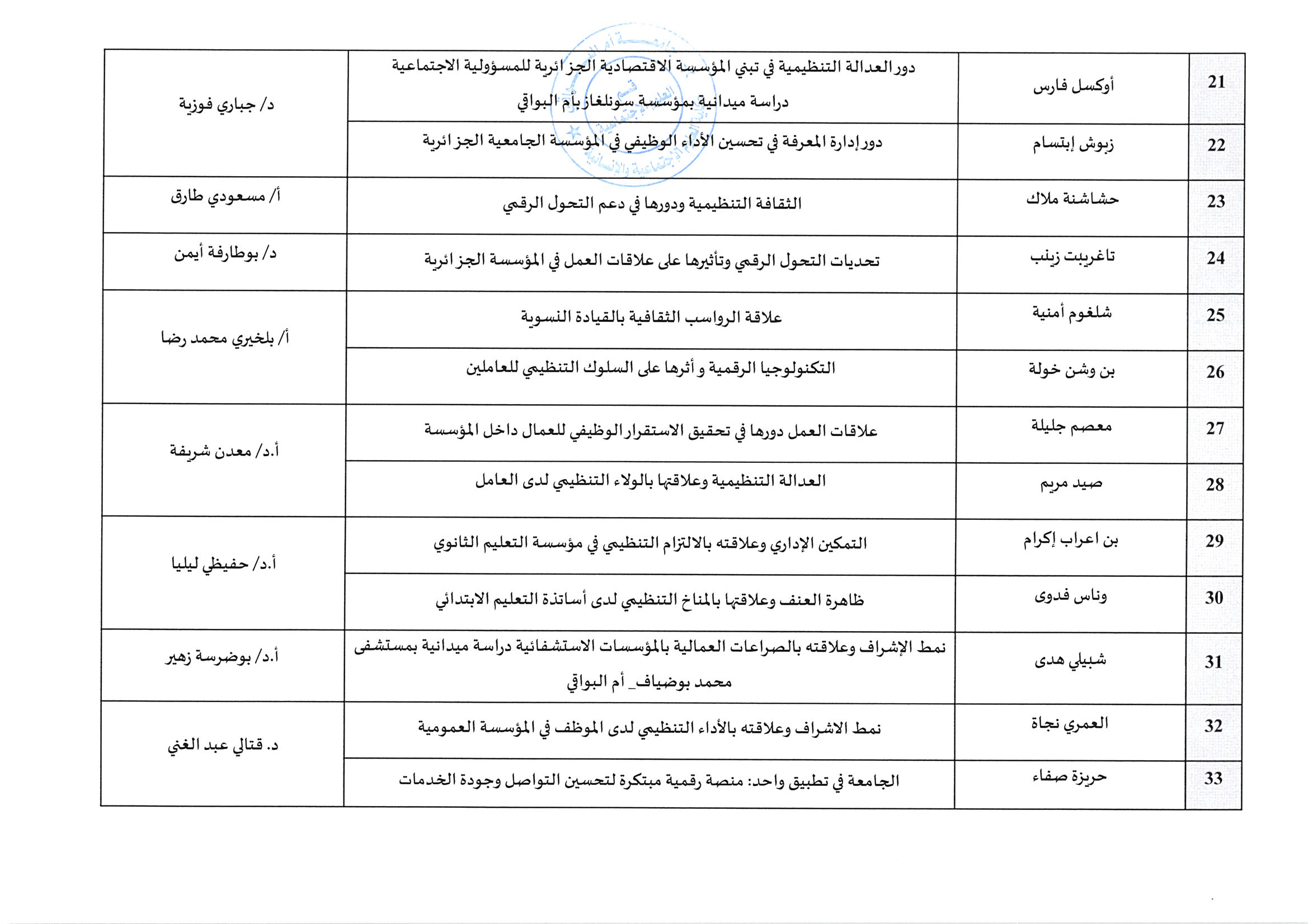 2/ توزيع الإشراف النهائي خاص بالسنة ثانية ماستر :