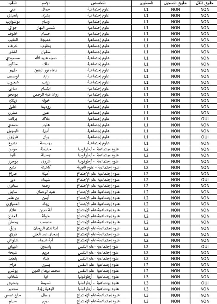 قائمة الطلبة الذين لم يكملوا إجراءات التسجيل
