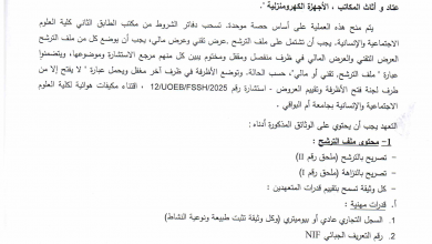 يعلن عميد كلية العلوم الإجتماعية والإنسانية بجامعة أم البواقي عن استشارة للأشخاص الطبيعيين والمعنويين (بيع بالتجزئة – بيع…