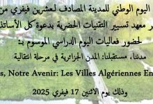 يعلن مديـر معهد تسييـر التقنيــات الحضــرية بجـــامعة ام البــواقــي عن اجراء استشارة متعلقة بالنقل للتربصات الميدانية وفي الوسط المهني…