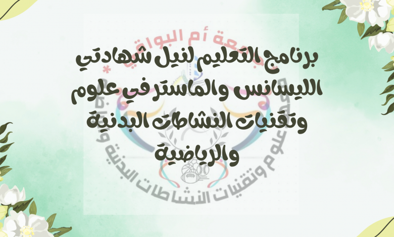 برنامج التعليم لنيل شهادة الماستر في علوم وتقنيات النشاطات البدنية والرياضية (تربية بدنية ورياضية)