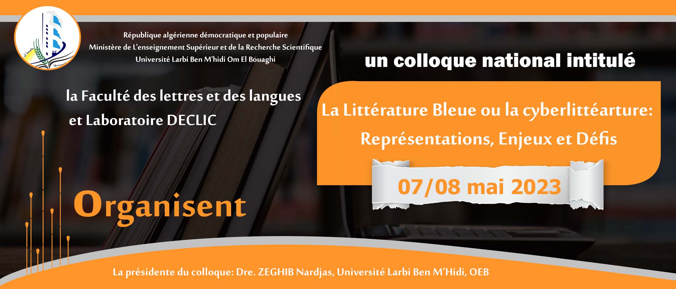 La littérature Bleue ou la Cyberlittérature La littérature Bleue ou la Cyberlittérature Représentations, Enjeux et Défis Reporté au 06/07 Décembre 2023 A Télécharger: Dépliant fr Dépliant En Dépliant Ar