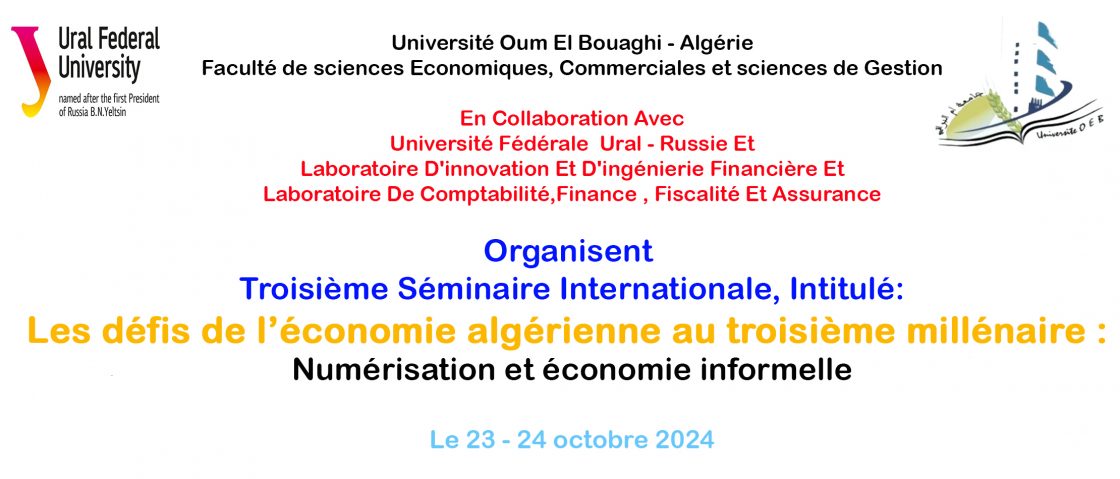 Les défis de l’économie algérienne au troisième millénaire : Numérisation et économie informelle Les défis de l’économie algérienne au troisième millénaire : Numérisation et économie informelle A Télécharger: Dépliant fr Dépliant En Dépliant Ar Paper SubmissionProspective authors are invited to submit their papers written in English: The full papers should be submitted in the template below for conferences via: Template Chargement…